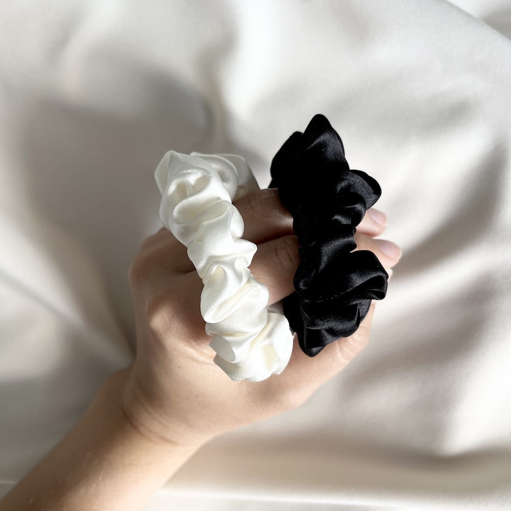 Zestaw dwóch jedwabnych MINI scrunchies | BLACK & WHITE